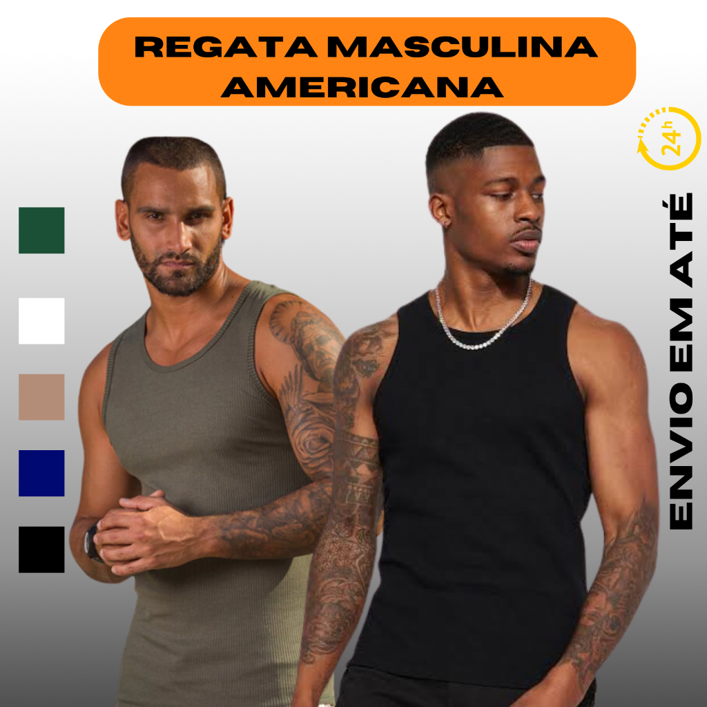 Camiseta Americana Canelada Masculina estilo Slim Algodão Regata Americano