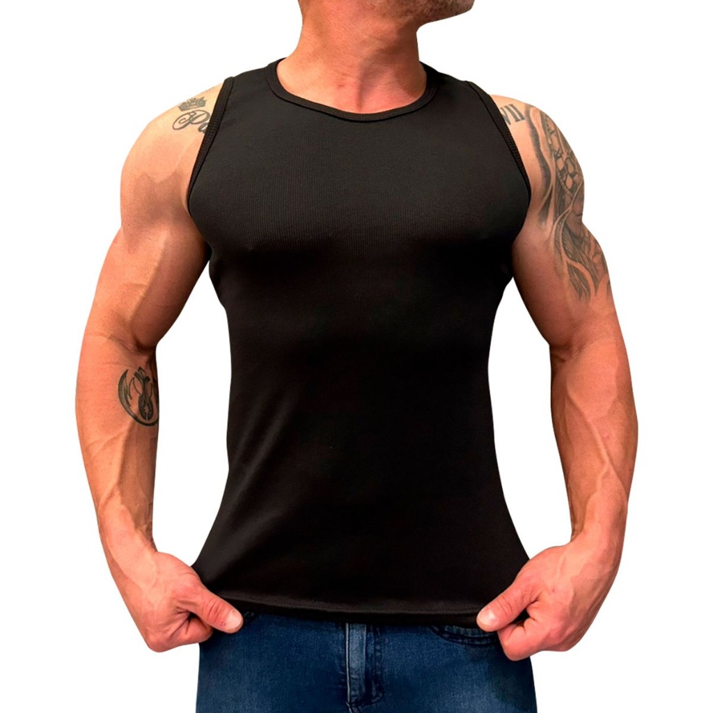 Regata Americana Masculina Ribana Canelada Justa Camiseta Algodão Academia Basica Tamanho P M G GG
