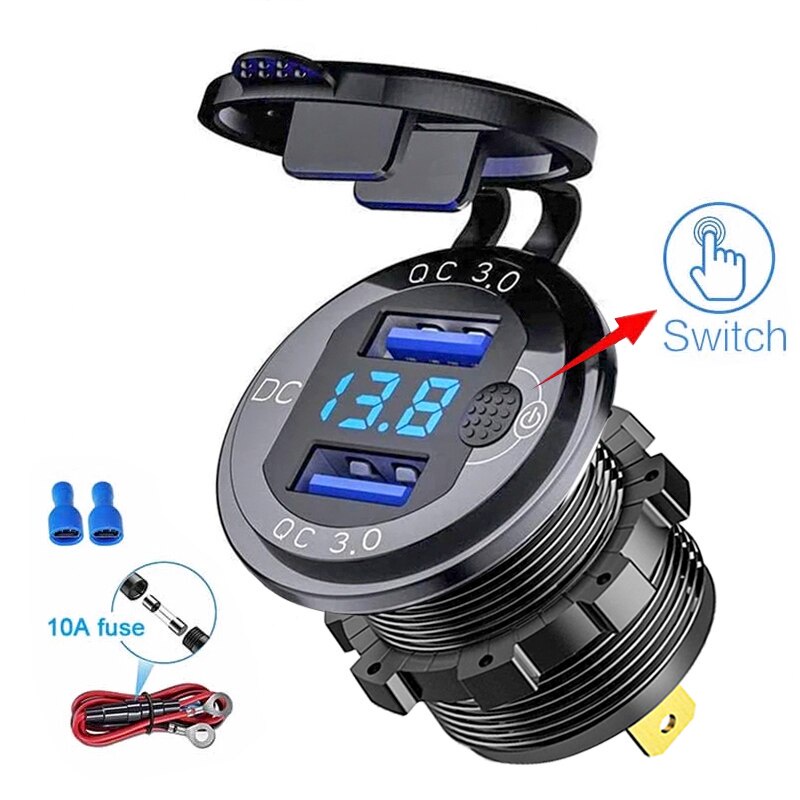 Carga Rápida Do Carro QC 3.0 36W Tomada De Carregador USB Duplo À Prova D'água Com Interruptor Voltímetro Para Caminhão De Barco ATV De Motocicleta 12V/24
