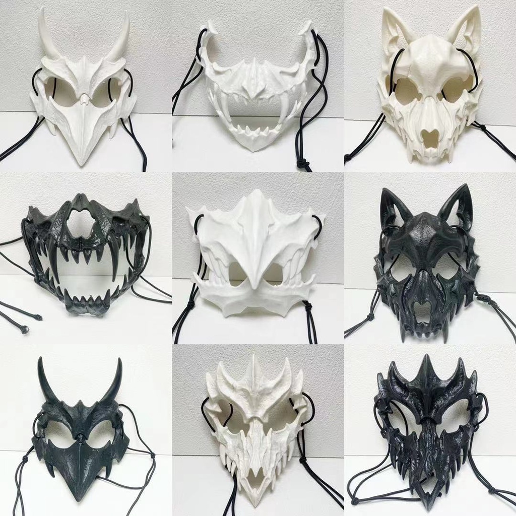 [Máscara De Crânio De Festa Dentes Longos Esqueleto Demoníaco Meia Cara Dragão Lobo Tigre Houjuu Nue Cosplay Traje De Halloween Boas Adereços