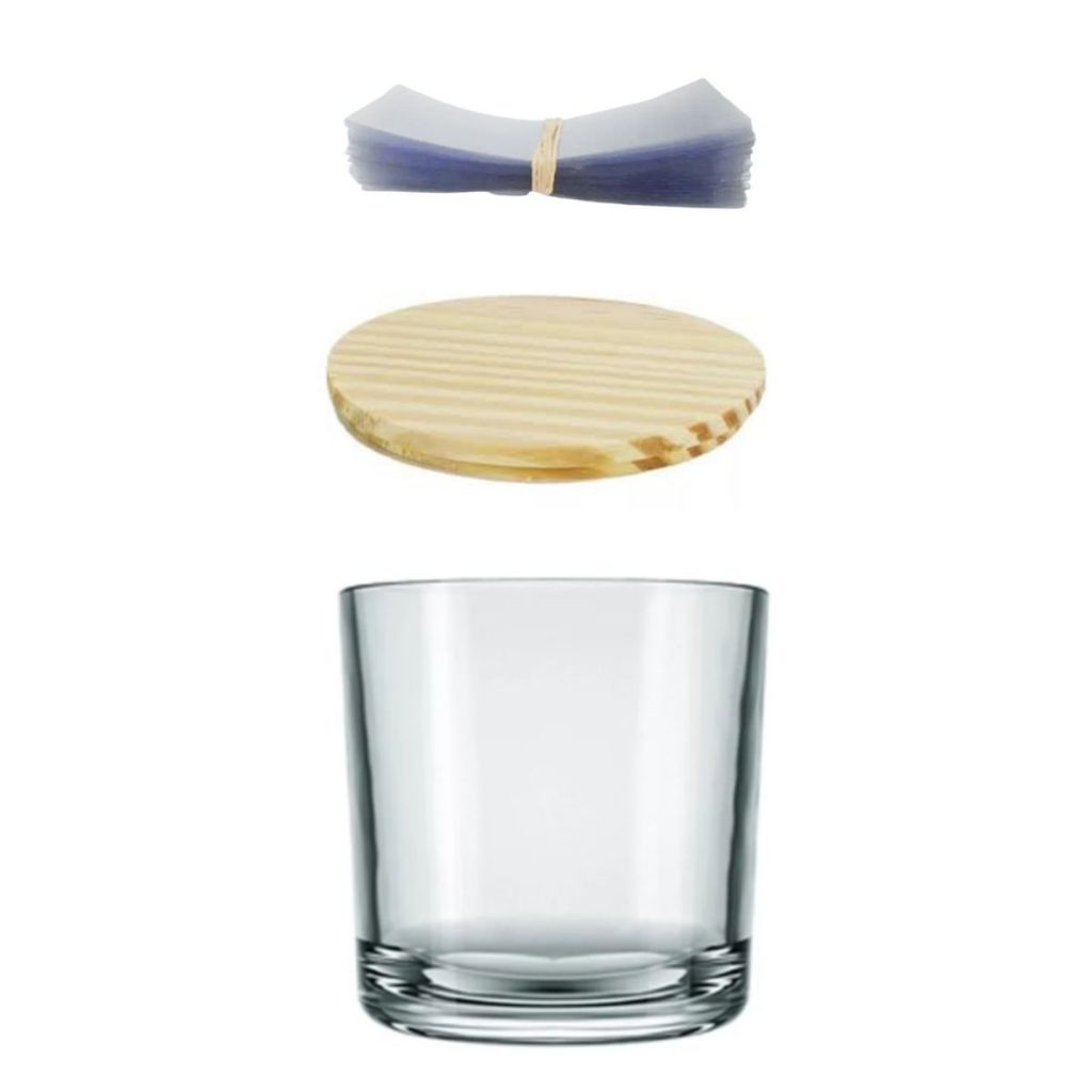 24 Copo De Vidro Whisky 265ml Com Tampa Madeira de Alta Qualidade + Lacres Para Velas Aromáticas Artesanais