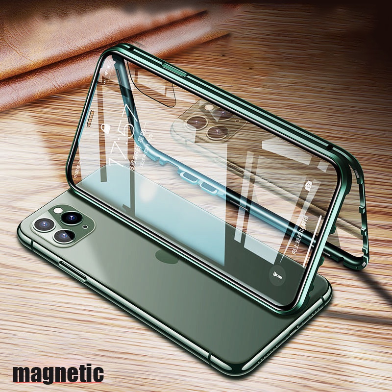 Vidro Dupla Face 360 ° Capa Magnética De Metal Para Iphone 13 12 11 Pro Max Mini Xs X R Xr 7 8 Plus Se 2020