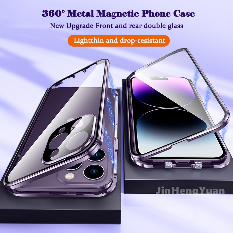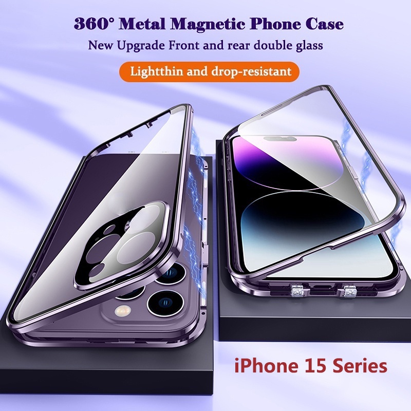 360 ° Capa De Adsorção Magnética Metálica Para iPhone 15 14 13 Pro Max Plus 11 Original De Liga Roxa Vidro Dupla Face
