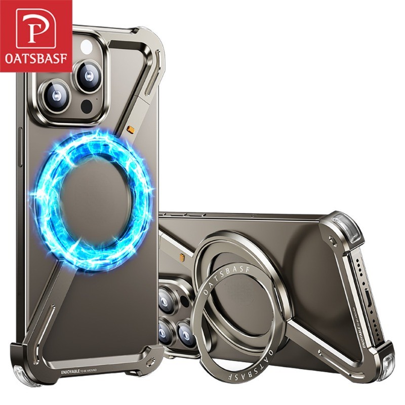 OATSBASF Capa De Telefone Magnética Sem Moldura De Metal Com 360 ° Suporte Para iPhone 16 Pro Max/16 pro/16E