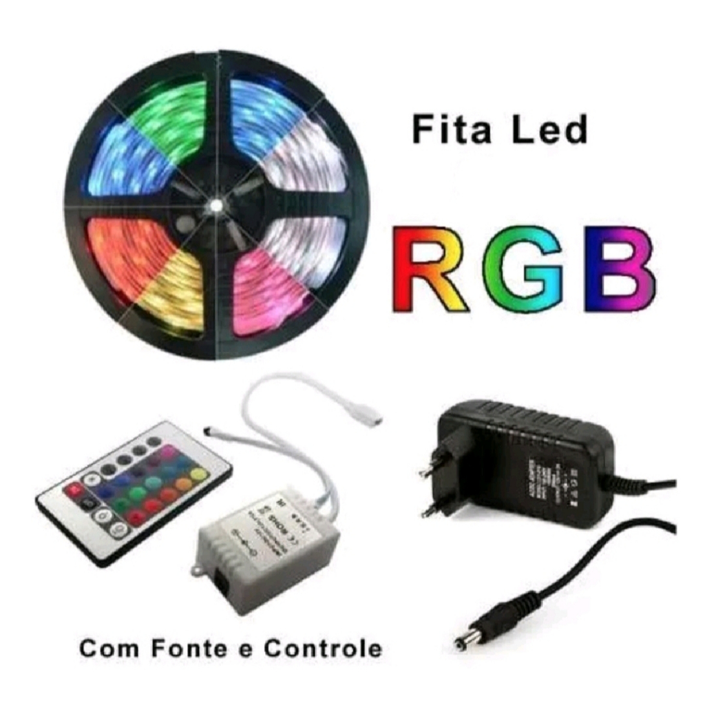 Fita Led Ultra Rgb 5050 5 Metros Completa + Fonte 2A 12v + Controle Rolo 5m 16 Cores Colorida Aprova D'agua
