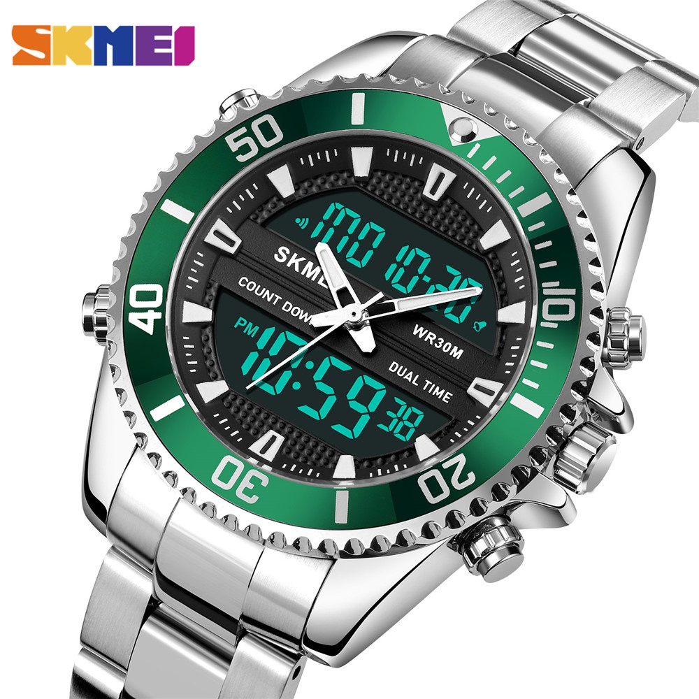 Relógio SKMEI Quartz Digital À Prova D'água Masculino Esportes Com Hora Duplo Em Aço Inoxidável