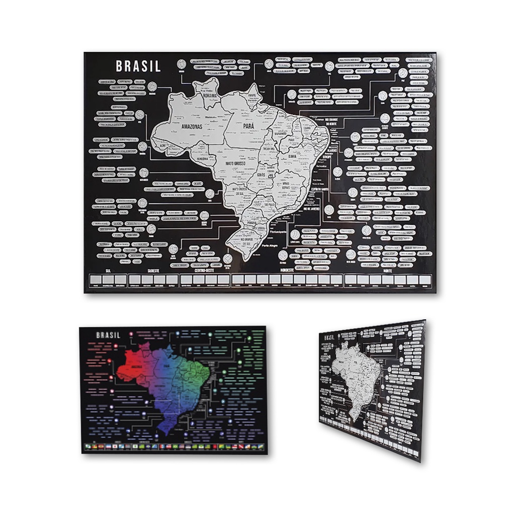 Mapa de Raspar do Brasil Poster Grande 70x47cm Com pequenos Erros