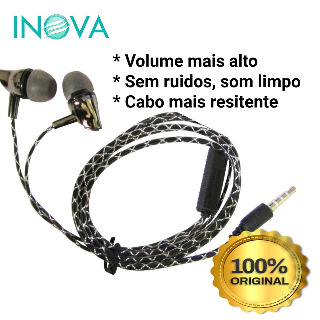 Fone De Ouvido Com Microfone Com Fio Cabo De Aço Mais Resistente P2 Inova Original FON-10071
