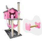 Kit Arranhador Sisal Casa Para Gatos Dois Andares Com Rede + Poste Cara de Gato - MIUPETZ STORE