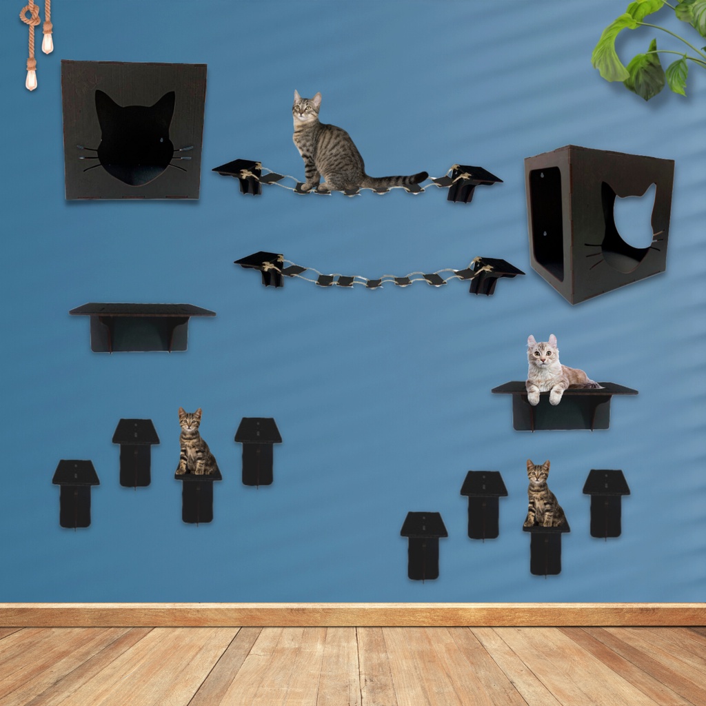 Kit Playground para Gatos Em Mdf Circuito de Parede para Gato 9 Peças Brinquedo de Gato Ponte Nicho Prateleiras Pra Gatos