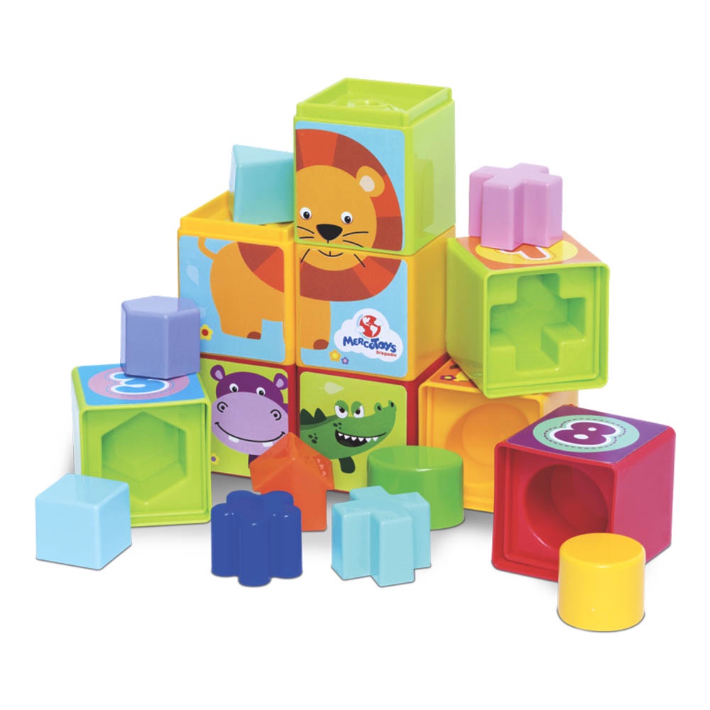 Cubinhos Educativo Blocos Didáticos Torre De Empilhar Encaixar Montar Bebê 1 Ano Mercotoys