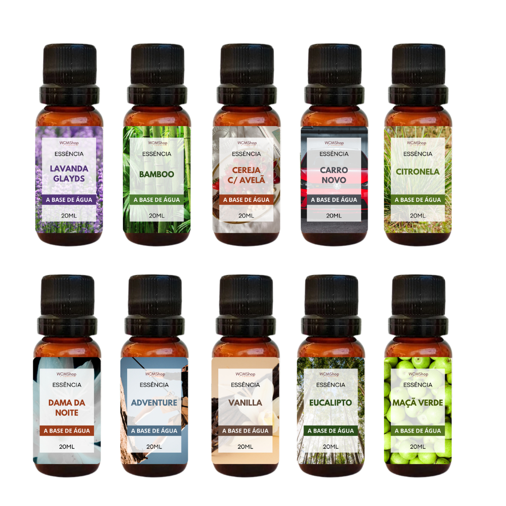 Kit 10 Essências Para Umidificador Aromatizador e Difusor Elétrico 20ml Hidrossólúvel a Base de Água