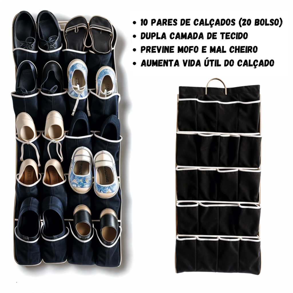 Sapateira Atrás Porta Organizador de Sapatos Tênis Vertical 20 Bolsos Multiuso Divisorias