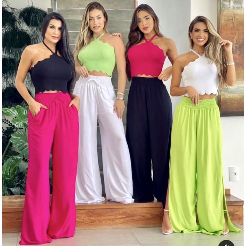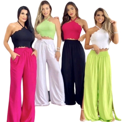 Calça Pantalona com aberturas na Lateral Tendência Moda Blogueira Conforto