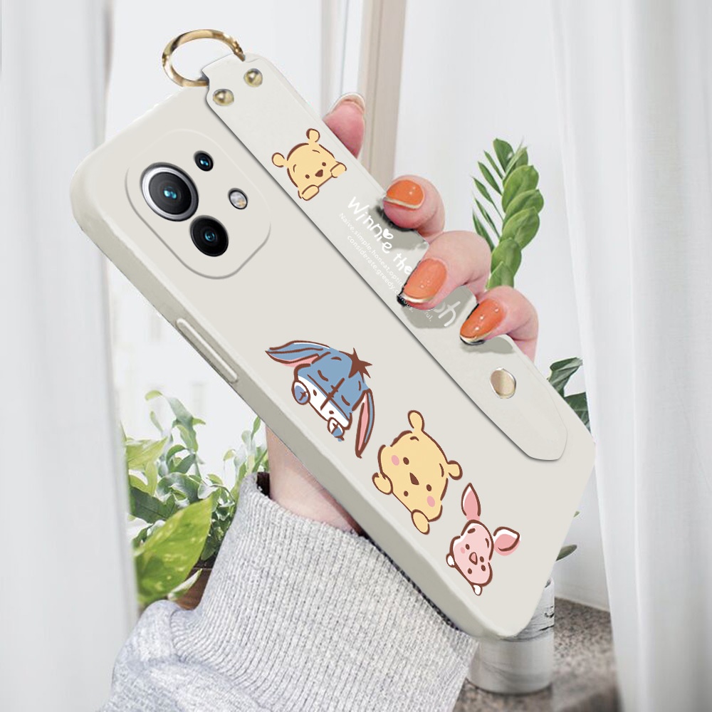Capa Case Capinha Celular Para Xiaomi Mi 11 Lite 5G (Suporte Pulseira) Winnie The Pooh Parceiro Padrão Dos Desenhos Animados TPU Tampa Traseira Encaixa O Furo Do Corpo Precisamente Anti-Colisão Completo Proteção Da Caixa Telefone Móvel