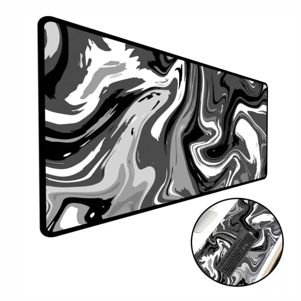 Mouse Pad Gamer Speed Extra Grande, Abstract Premium, Preto E Branco - 70x30 Cm