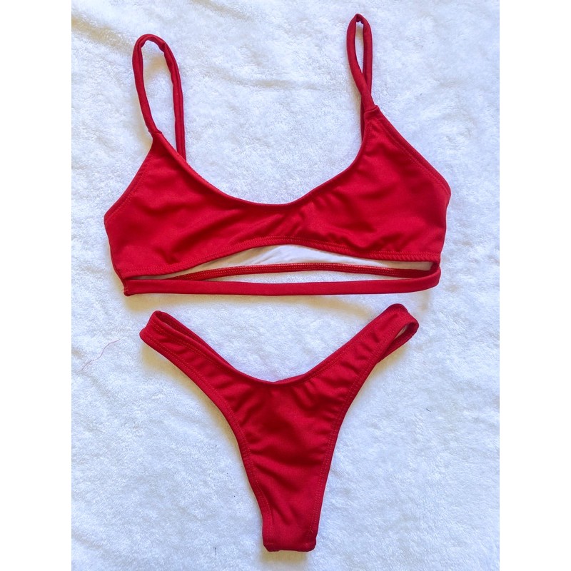 Biquíni Forrado Suplex Modelo Cropped Top Faixa E Asa Delta Moda Gringa Feminino