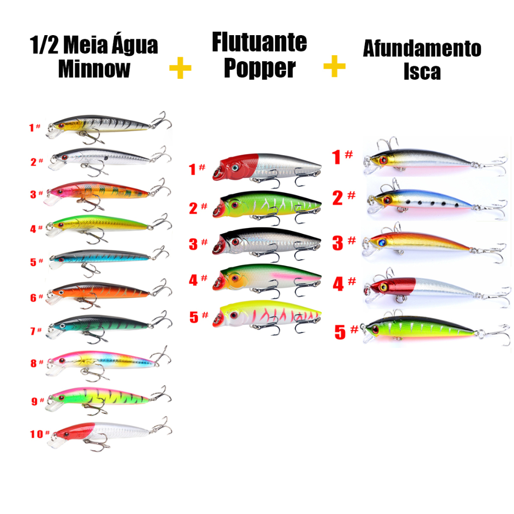 Isca Artificial Kit Completo 20 UNI Com Superfície /meia Água /afundo Para Tucunaré Traíra Dourado
