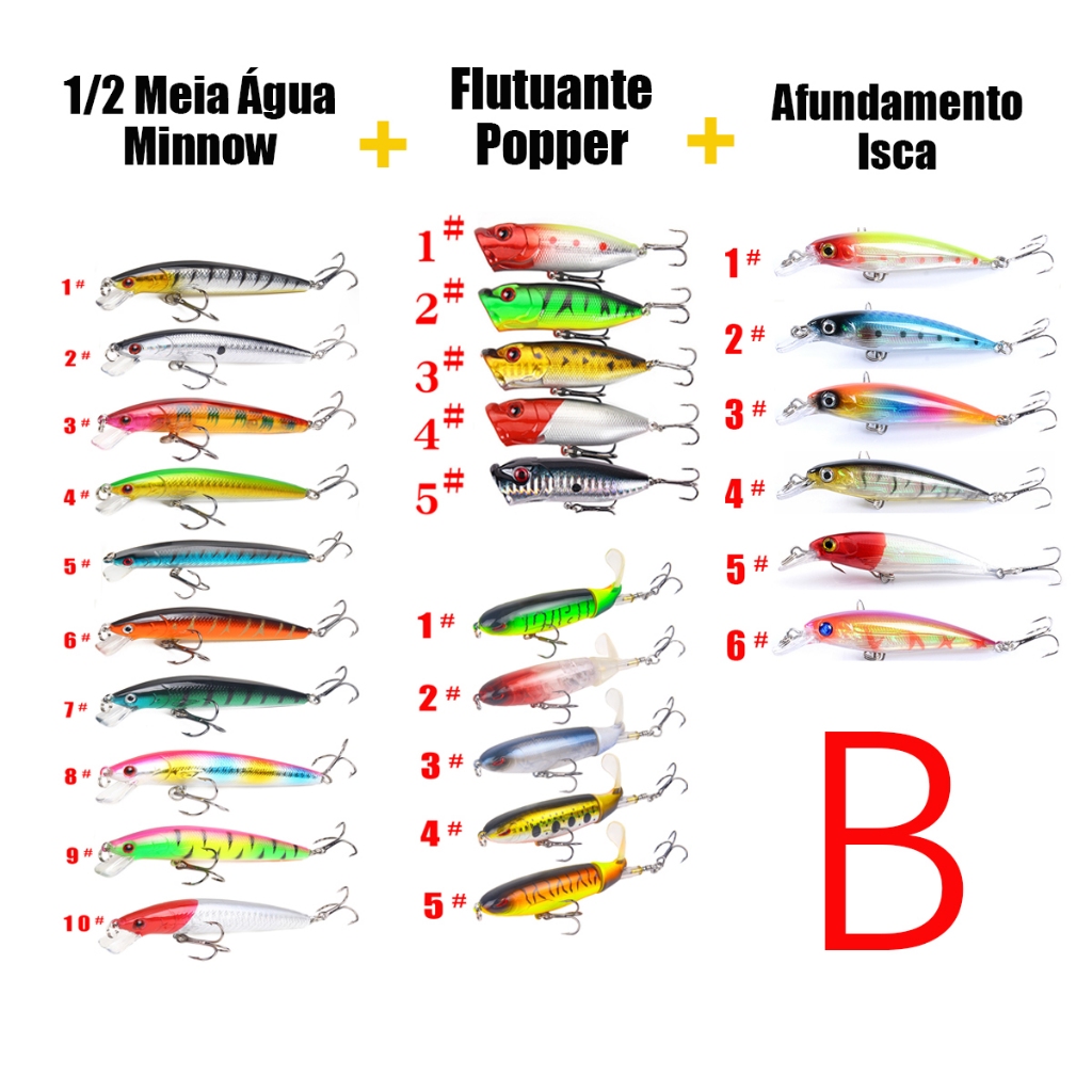 29 Kit Com 10 Isca Artificial P/ Pesca Tucunaré Dourado Robalo