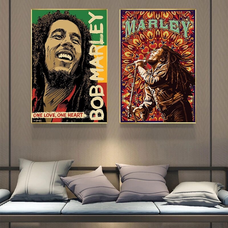 Quadro decorativo 2 peças 40x60 abstrato moderno colorido bob marley para casa sala quarto hall