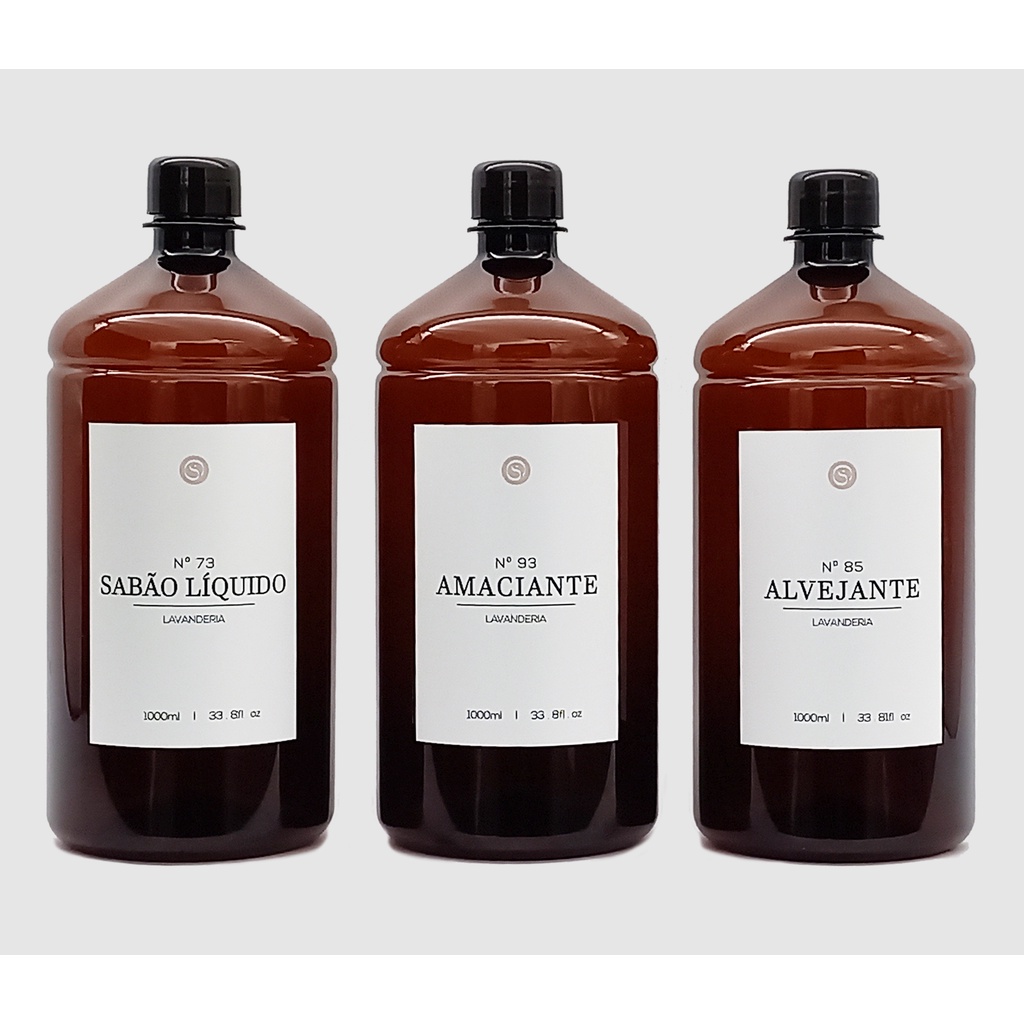 Kit 3 Frascos Plástico Âmbar 1 Litro Lavanderia Sabão Líquido Amaciante Alvejante Organização Minimalista