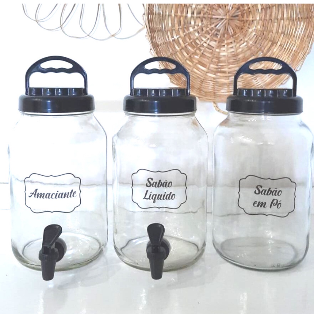 Kit Lavanderia 3 Vidros Para Deixar Sua Lavanderia Organizada, Sabão Em Pó, Sabão Liquido, Amaciante