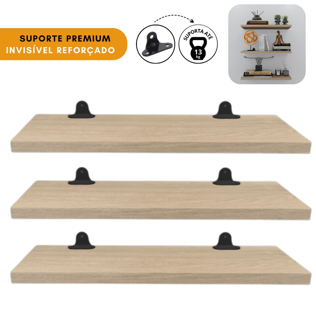 Kit 3 Prateleiras Suspensa MDF Jogo Decoração Suporte Premium Resistente Para Quarto, Cozinha, Sala, Lavanderia Cores