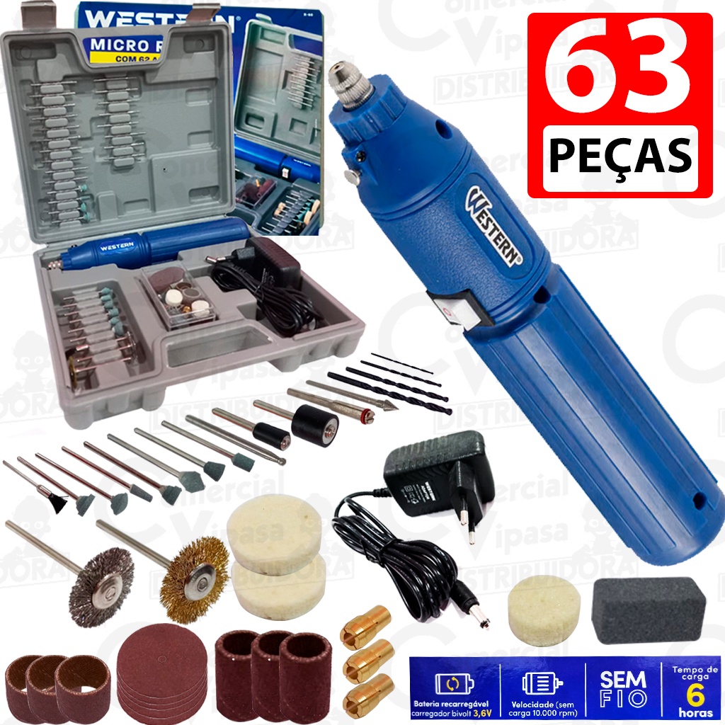 Kit Jogo Micro Retífica Lixadeira Sem Fio Portátil Com Maleta 63 Peças Acessórios Bivolt