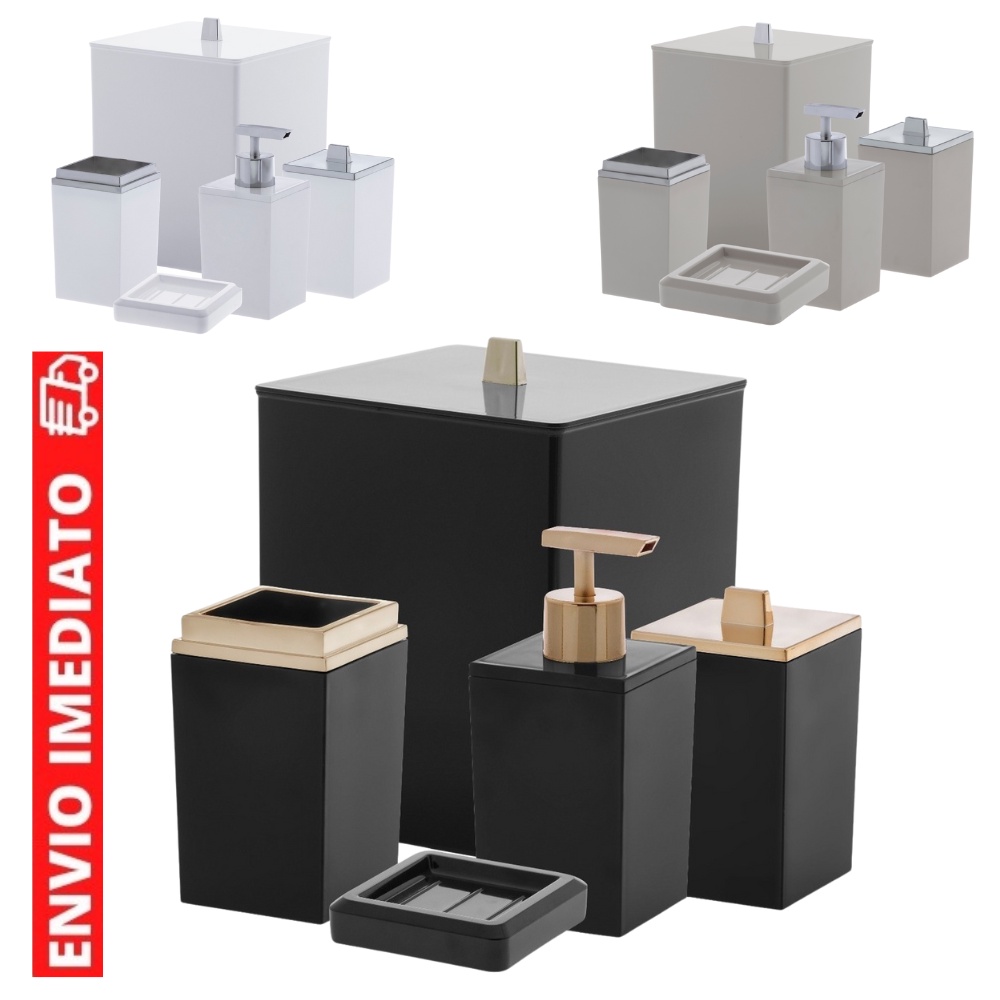 Kit Banheiro Lavabo 5 peças com lixeira porta Sabonete sabonete liquido Escova Algodão