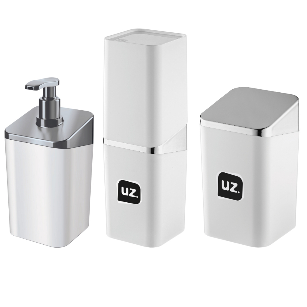 Kit Organizador de Pia Banheiro UZ Dispenser Sabonete Liquido Porta Escova Porta Algodão Decoração