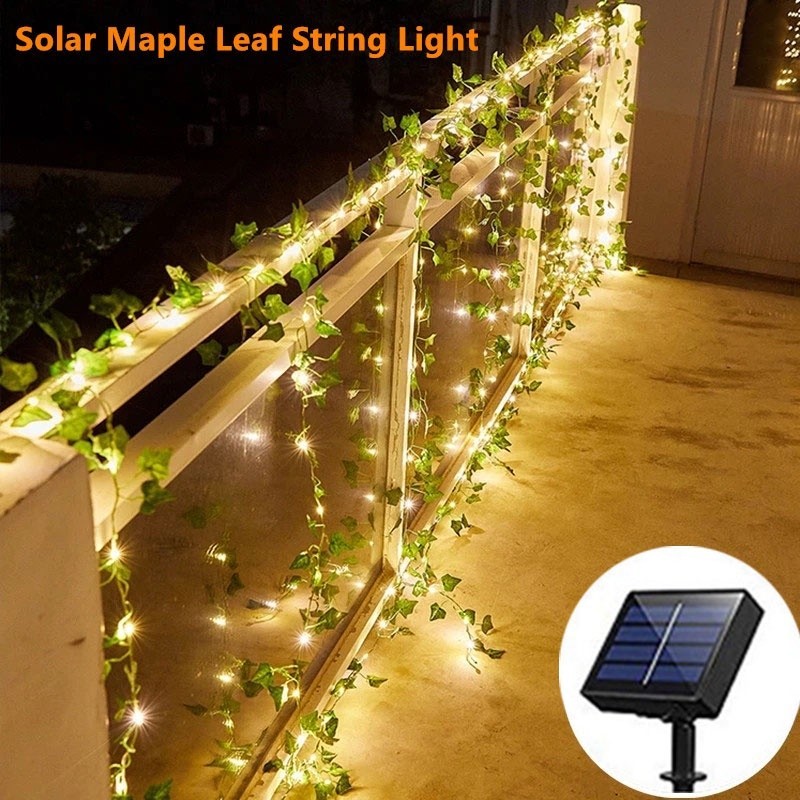 Kit Solar Cortina De Led Com Plantas Artificiais De Folhas De Hera Decoração Recarregavel ao Sol