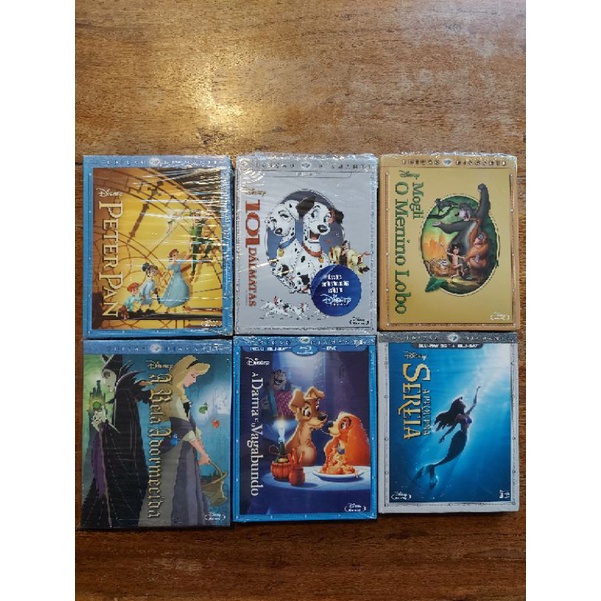 Coleção Blu Rays Disney Edição Diamante com Luva. A Pequena Sereia, 101 dálmatas, a Belaa Adormecida, A Dama e o Vagabundo, Mogli o Menino Lobo, Peter Pan
