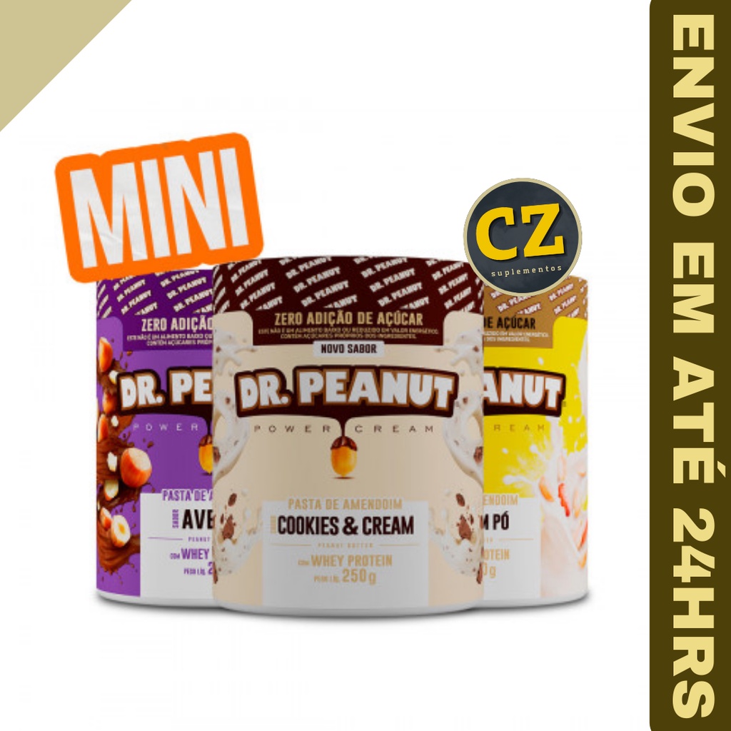 Pasta de Amendoim 250g Mini Dr. Peanut Saborosa Cremosa Gourmet Com Whey Protein Sem Açúcar Glúten e Lactose