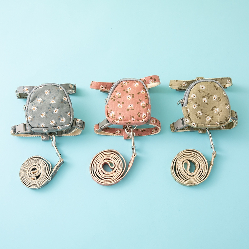 Coleira peitoral com Mochila E guia para cachorro pequenos e gatos e outros pets - Margarida FLOR