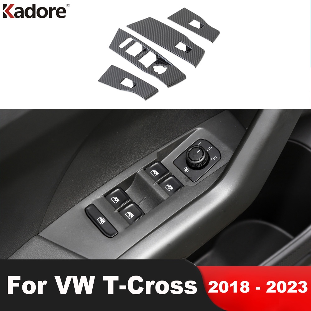 Carro Dentro Da Porta Braço Interruptor De Elevação Janela Botão Painel Capa Guarnição Para Volkswagen VW T-Cross Tcross 2018 2019 2020 2021 2022 2023 Acessórios Interiores De Fibra De Carbono