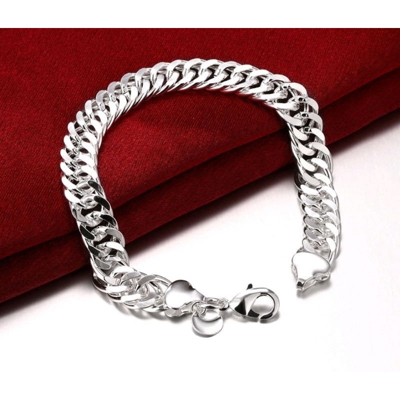 Pulseira Masculina Com Correntes Prata sterling 10mm 8 Polegadas