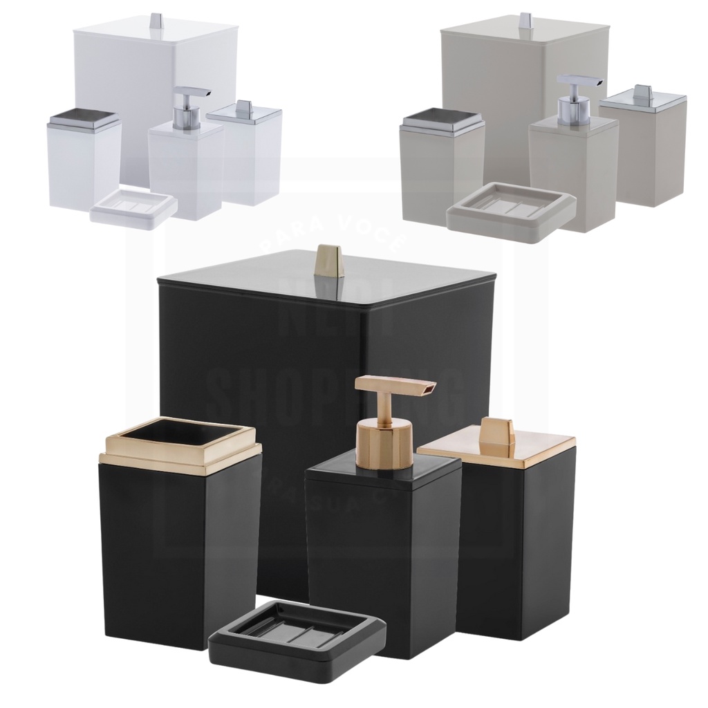 Kit Banheiro Lavabo 5 peças com lixeira porta Sabonete sabonete liquido Escova Algodão