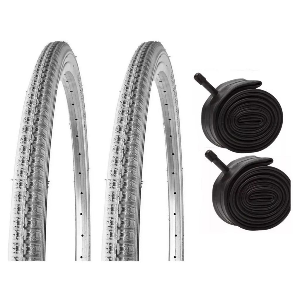 Par Pneus Cadeira De Rodas Vee Rubber Aro 24 X 1.3/8 Cinza Com 2 Camaras