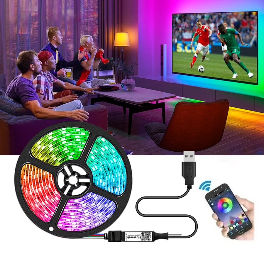 SEM CONTROLE Bluetooth Fita Led 5050 Rgb Colorida 3m 5v Usb Para Tv Pc Carro Sem Controle
