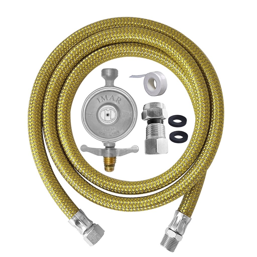 Kit Instalação a Gás Botijão Glp Mangueira + Regulador + Adaptador Para Fogão Forno Cooktop Outros Selecione o Tamanho Da Mangueira