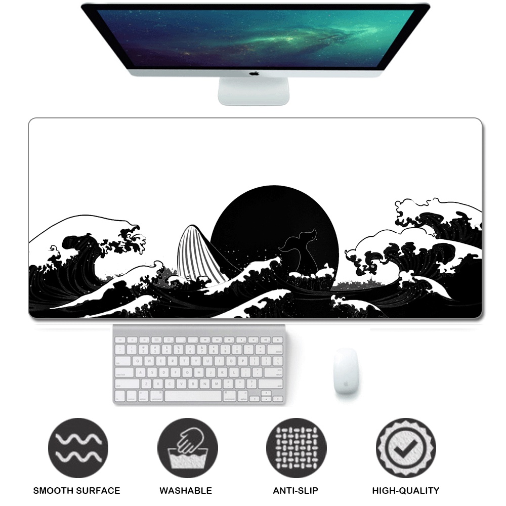 Mouse Pad Japão Japão Preto Grande Ondas De Manga Comprida Borda De Borracha Grande Mouse Pad Mousepad Mat Para Csgo Dota