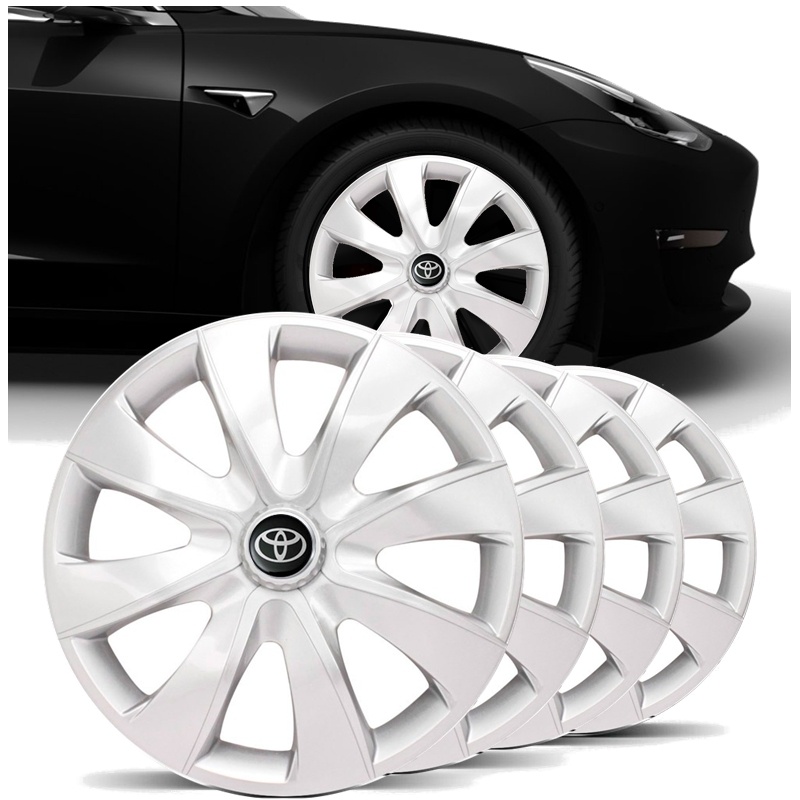 Jogo 4 Calotas Prime Aro 14 Prata Toyota Etios Corolla Sedan Com Emblema