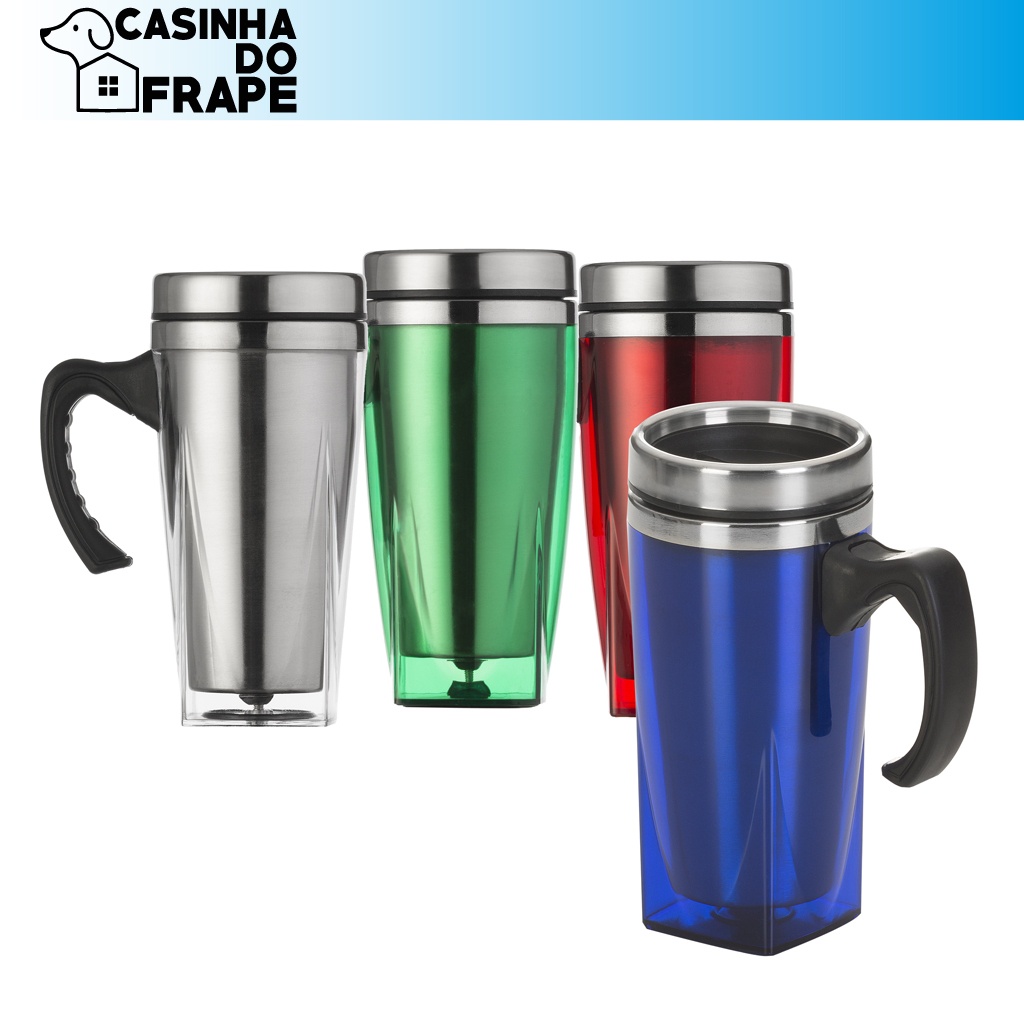 Caneca Acrílica Inox Fundo Quadrado 450ml Com alça