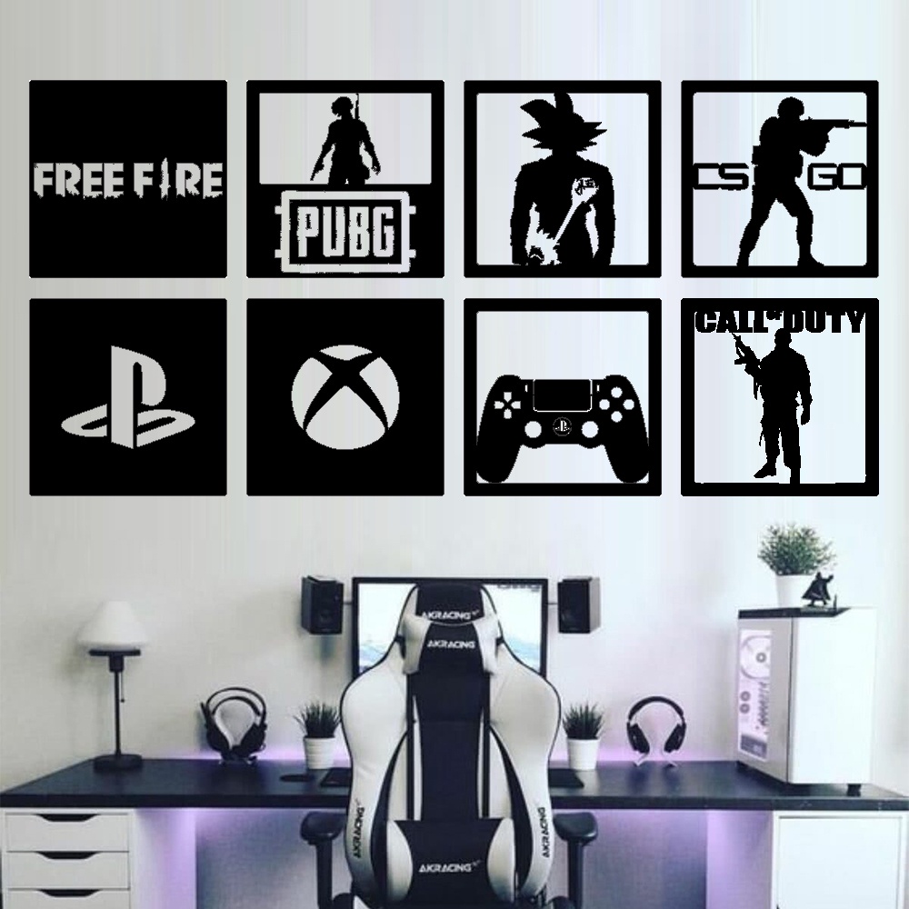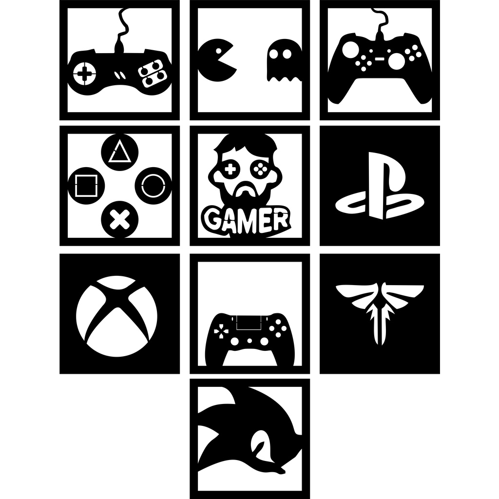 Quadro Placa Decorativa Vazada Jogos Gamer Geek 15x15cm MDF 3mm - Decori Br