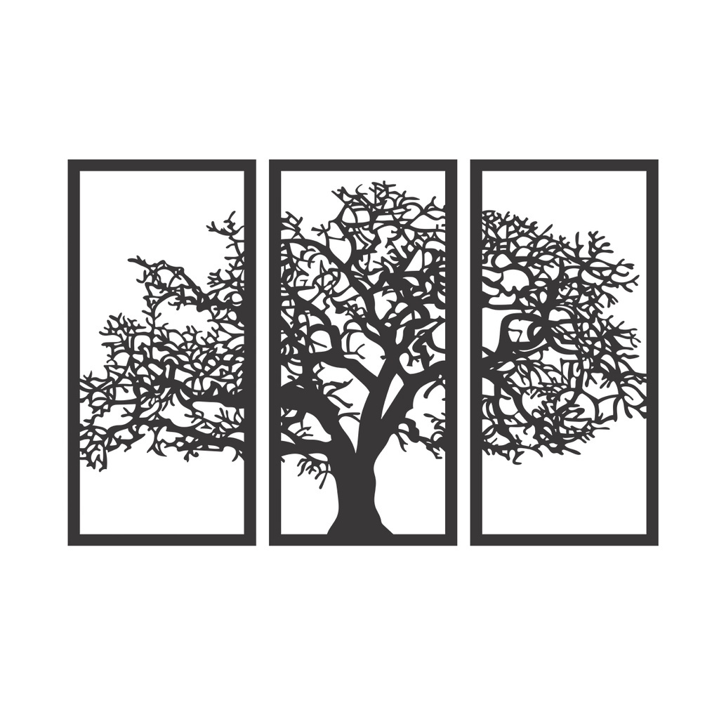 Quadro Decorativo Árvore da Vida 3 Peças C/ Dupla Face 3M em MDF Vazado de 3mm Preto