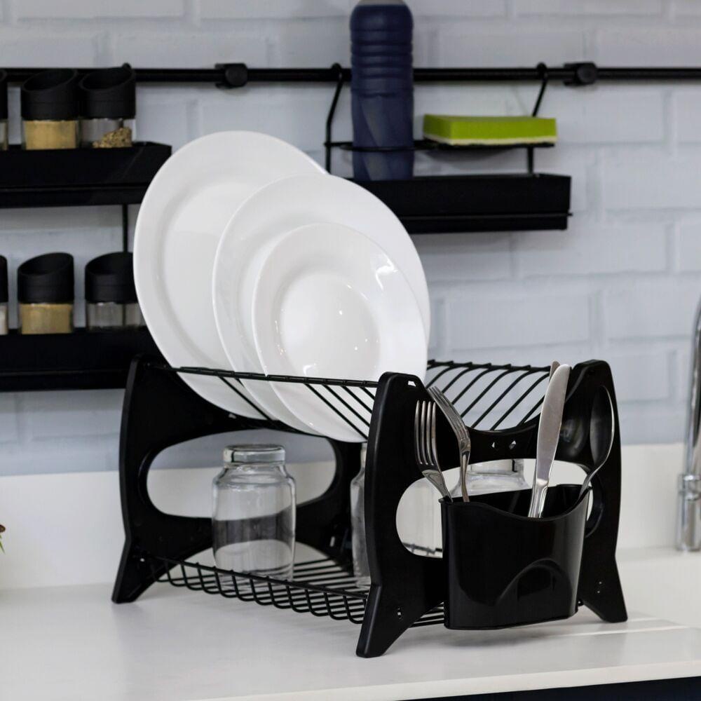Escorredor Preto De Louça Cozinha Prato Duplo Porta Talheres