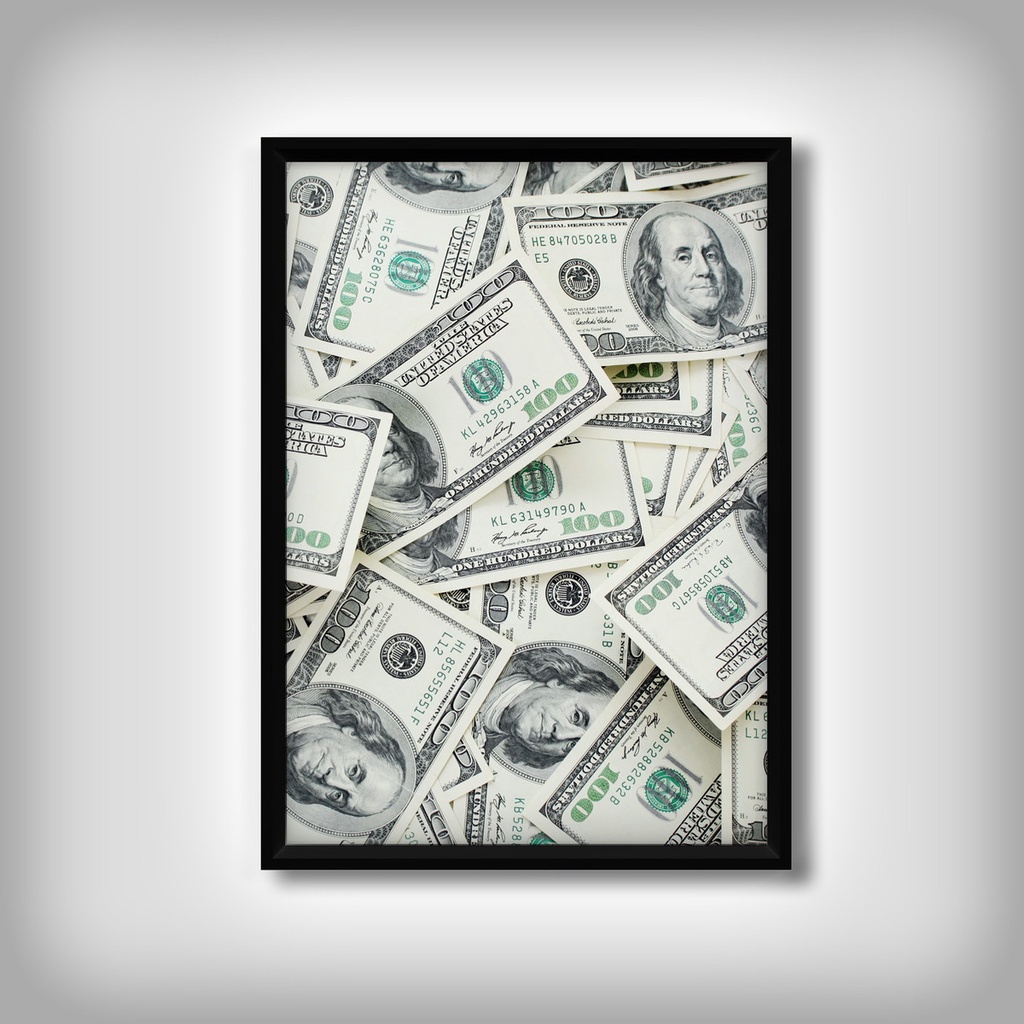 Quadro/Placa Decorativa Nótas de Dólar Dinheiro Para Sala Quarto
