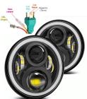 Farol de led redondo 7" alto e baixo 60w 17cm com suporte de fixação par