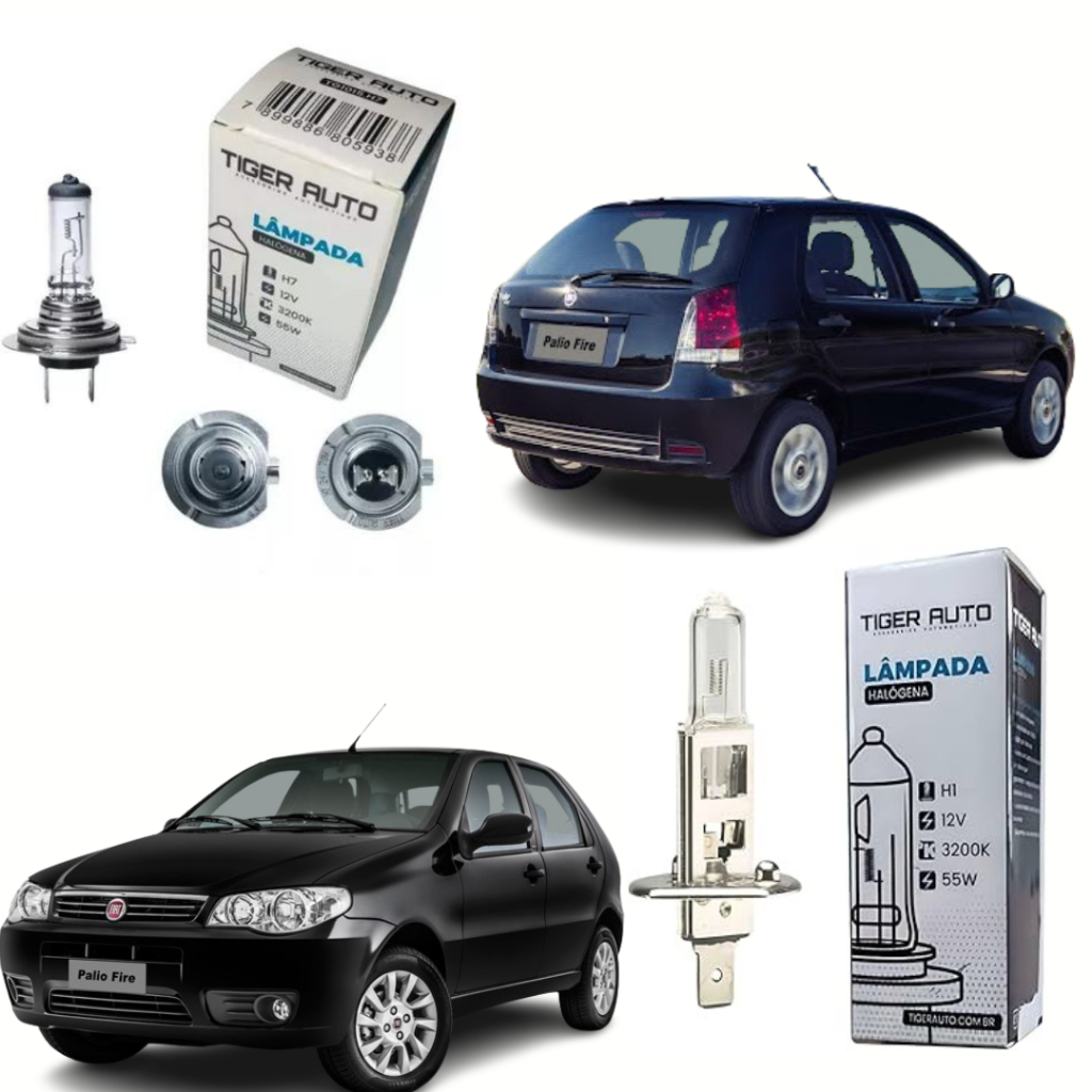 PAR DE LÂMPADA HALÓGENA FAROL ALTO E BAIXO H7+H1 PALIO G3 2004 À 2014