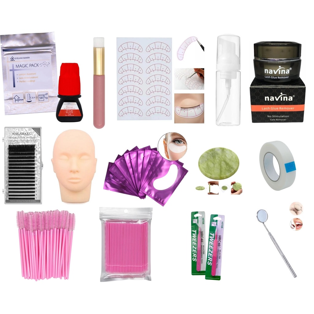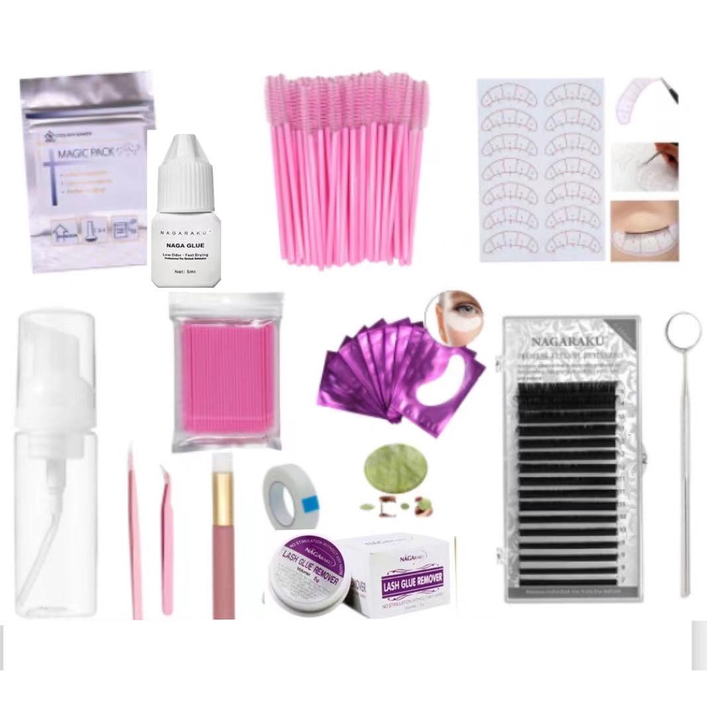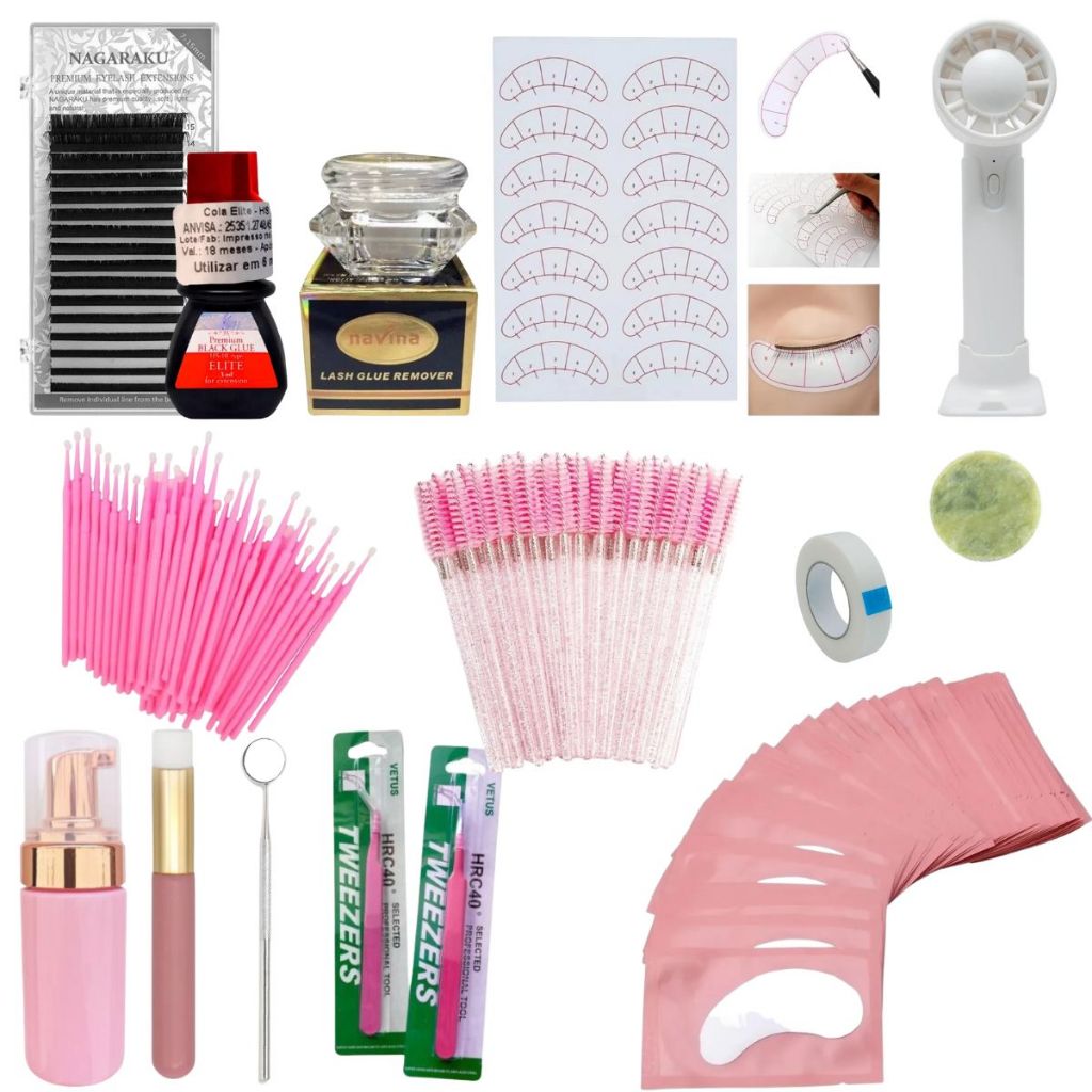 Kit Iniciante Treino Extensão Alongamento de Cílios Nagaraku Cola HS 10 3ML Removedor Navina